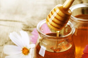 Brew chamomile tea and sweeten with honey for a soothing and calming herbal drink.